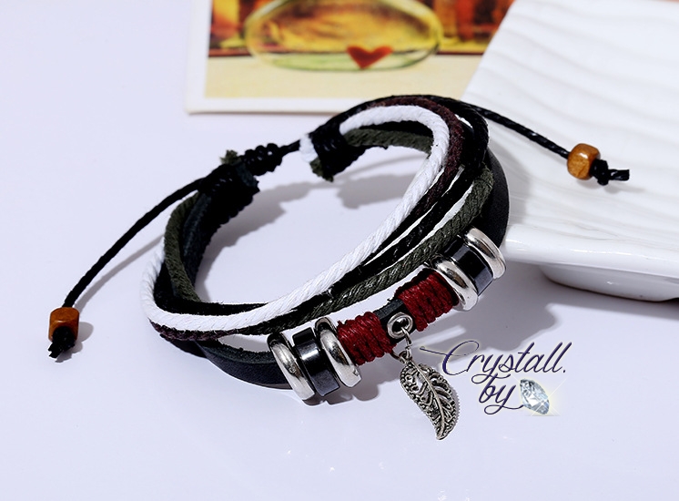 Браслет кожа с лепестком ручная работа арт.2145-1