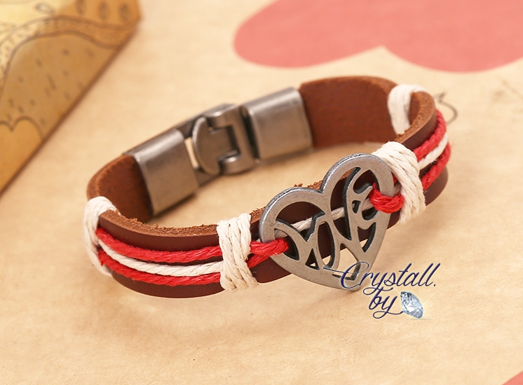 Браслет Сердца кожа ручная работа арт.2148