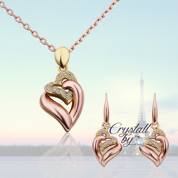 Союз двух сердце в комплекте украшений с позолотой станет отличным знаком ваших признанных взаимных чувств!